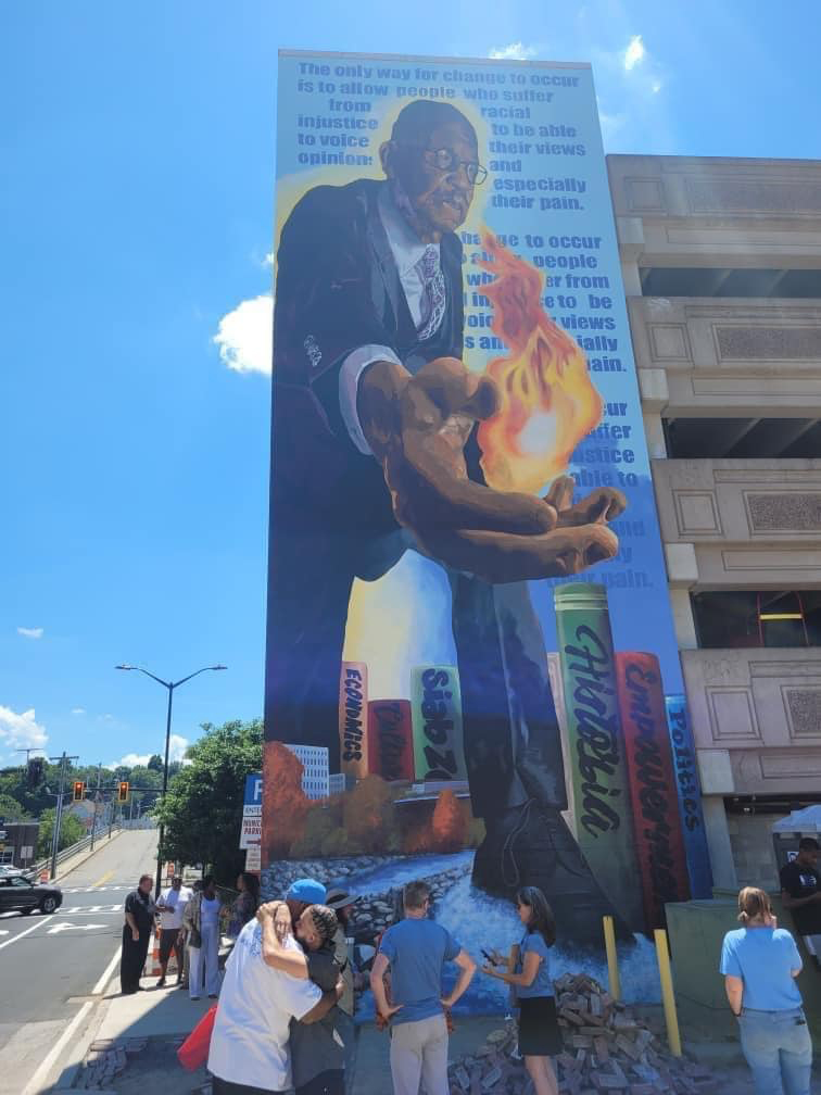 There’s a lot to see: On the side of the Putnam Street garage, a towering five-story mural features a portrait of local civil rights activist Adrian Ford. At 2 Boulder Drive, a retaining wall holds images of five city youths and inspirational phrases, including, “Our dreams have power,” while just up the street, another colorful mural “celebrates the power of art and creativity as a force of inspiration, healing and innovation.”